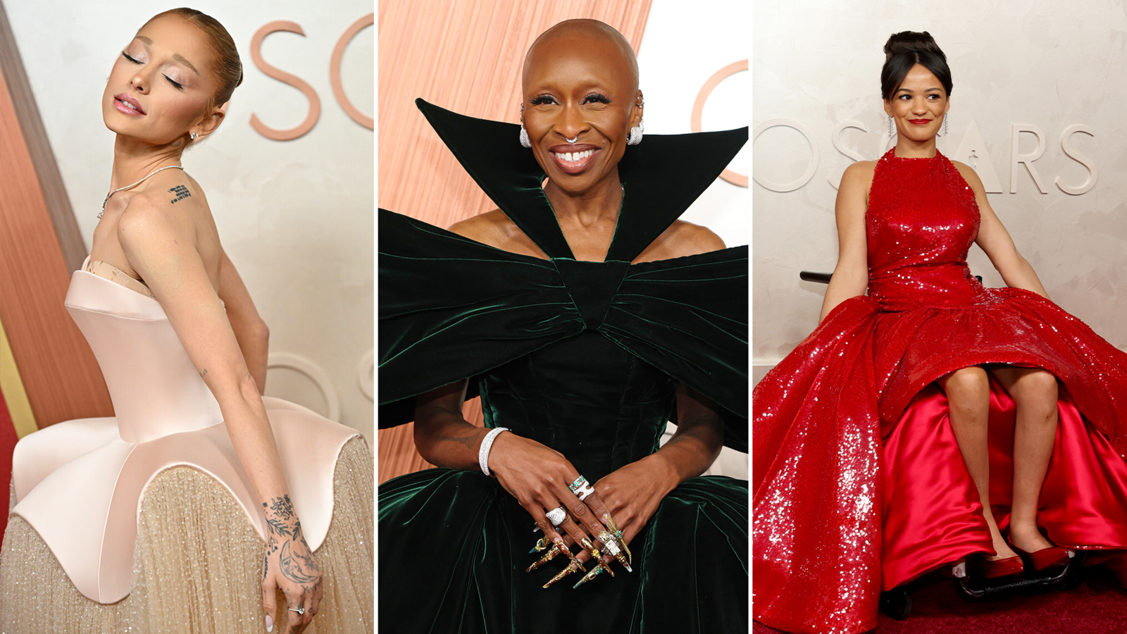 “Wicked” stars Ariana Grande and Cynthia Erivo have hit the Oscars red carpet.