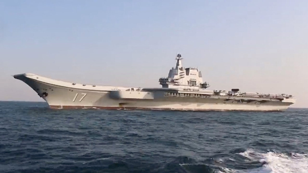 This image released by the Taiwan Ministry of National Defense shows China’s Shandong aircraft carrier sailing near Taiwan on Monday, March 31. (Taiwan Ministry of National Defense via AP)