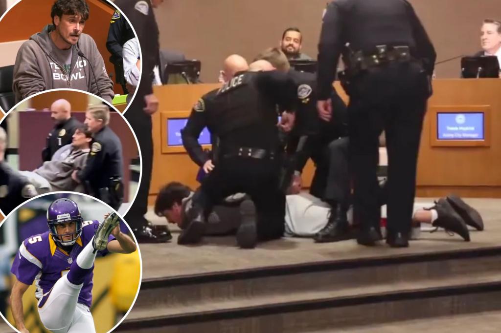 After telling the council he would partake in civil disobedience, Kluwe was arrested after taking one step toward them.