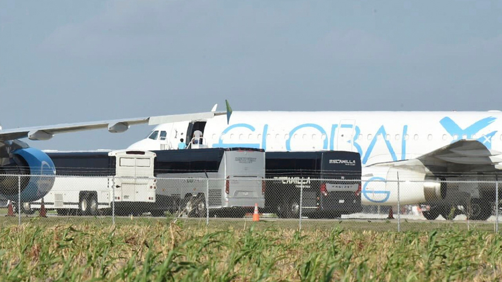 At the border-area airport in Harlingen, Texas, the scene Sunday morning was unmistakably active. Buses carrying migrants pulled onto the tarmac as clusters of federal agents moved quickly between the vehicles and waiting aircraft. Police cars circled the perimeter, and officers and security guards pushed reporters back from the chain-link fences that line the field. On the runway, planes sat with engines idling, ground crews making final preparations as if departures could come at any moment – all as the courtroom battle played out hundreds of miles away in Washington.