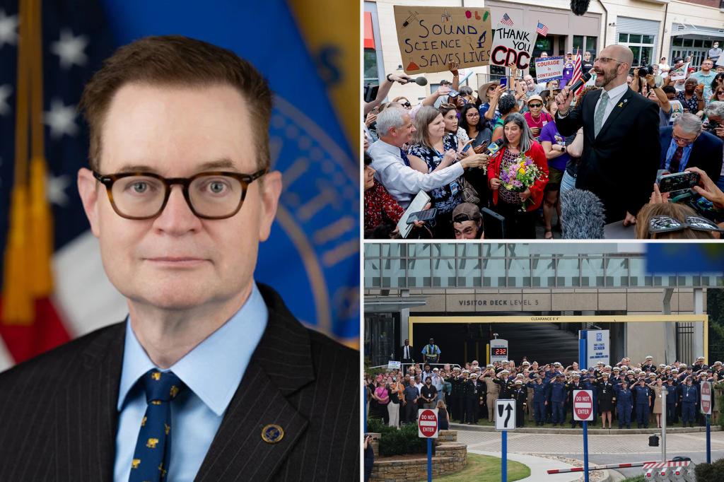 Former chief medical officer Deb Houry, former director of the National Center for Immunization and Respiratory Diseases Demetre Daskalakis and former director of the National Center for Emerging and Zoonotic Infectious Diseases Daniel Jernigan still appeared at the rally and were greeted by cheers from the crowd.