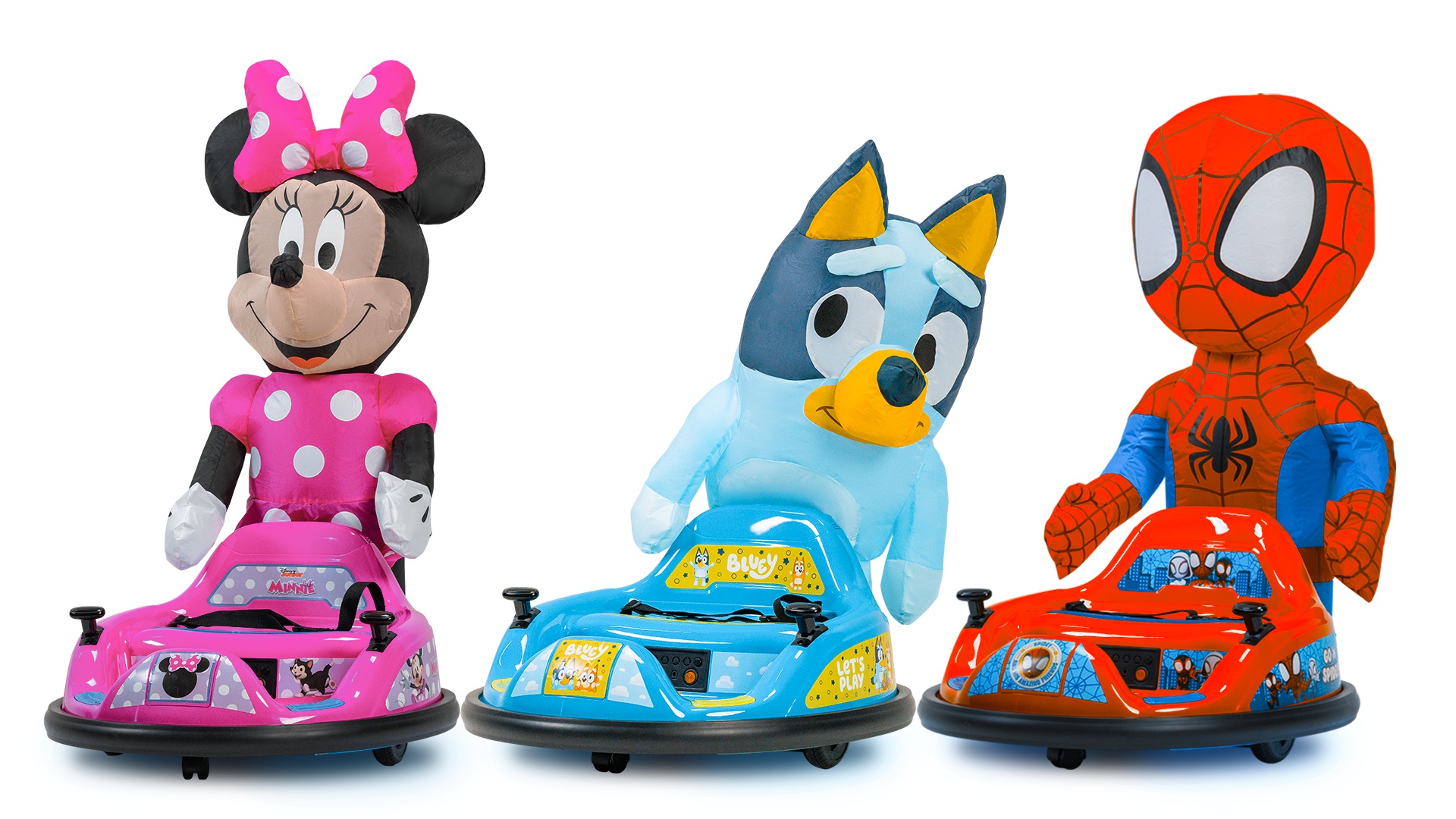 IMAGINAIR BUMPER CARS SPIDERMAN, BLUEY, MINNIE, STITCH, MICKEY, DINOS, HORSE, AND UNICORN (FLYBAR)
