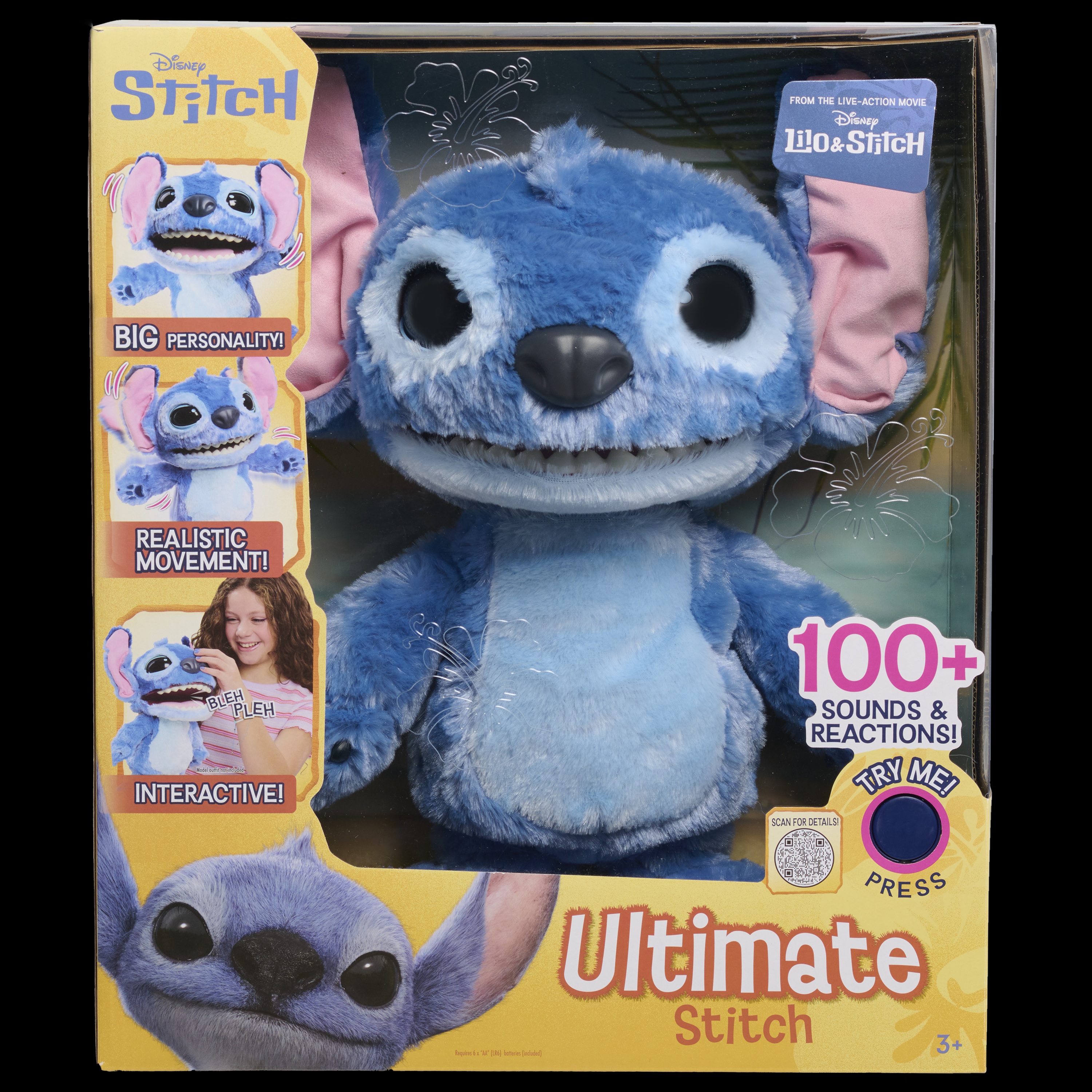 Enter the world of Disney with the Ultimate Stitch Interactive Feature Plush. Bringing over 100 sound and motion combinations, this 17-inch plush toy is inspired by the live-action reimagining of Disney’s Lilo & Stitch. It promises hours of laughter and surprises, responding to taps or presses on its nose, tongue, belly, or hand with amusing antics and phrases in Stitch’s native language. This interactive plush sneezes, giggles, munches, kisses, dances, and sings. Activate Stitch’s feelings of “‘Ohana,” or family, with a two-second touch, and enjoy his sweet side. Double-tap for a playful tantrum, complete with snarls and alien gibberish. Holding his hand will quickly return him to cheerful laughter. This plush toy makes for a standout piece in any Disney collection and adds entertainment to parties and family gatherings. It’s powered by 6 AA batteries, included in the package. Meant for ages 3 and up, it is priced at $69.99 and is available at Amazon, Target, and Walmart.