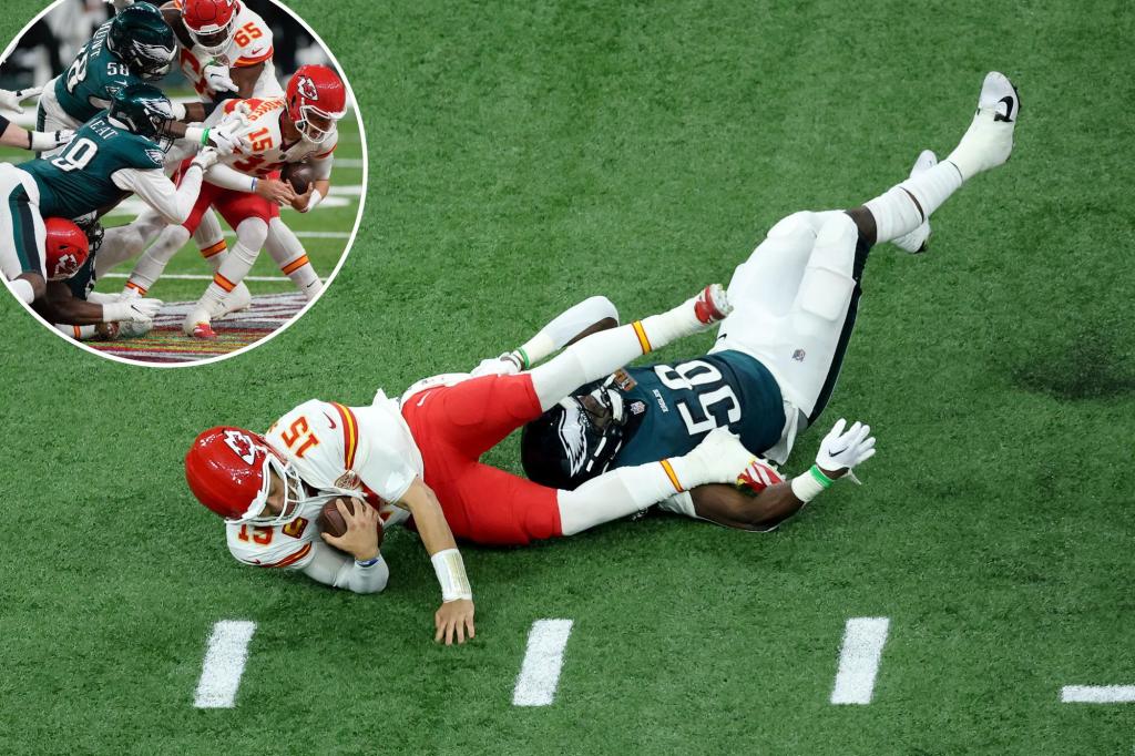 In a relentless display, the Chiefs allowed their star quarterback to endure nine hits and five sacks within the initial three quarters of the game. A pressured Mahomes committed two crucial interceptions during the pivotal first half, contributing to the Eagles’ 40-22 triumph in Super Bowl 2025.