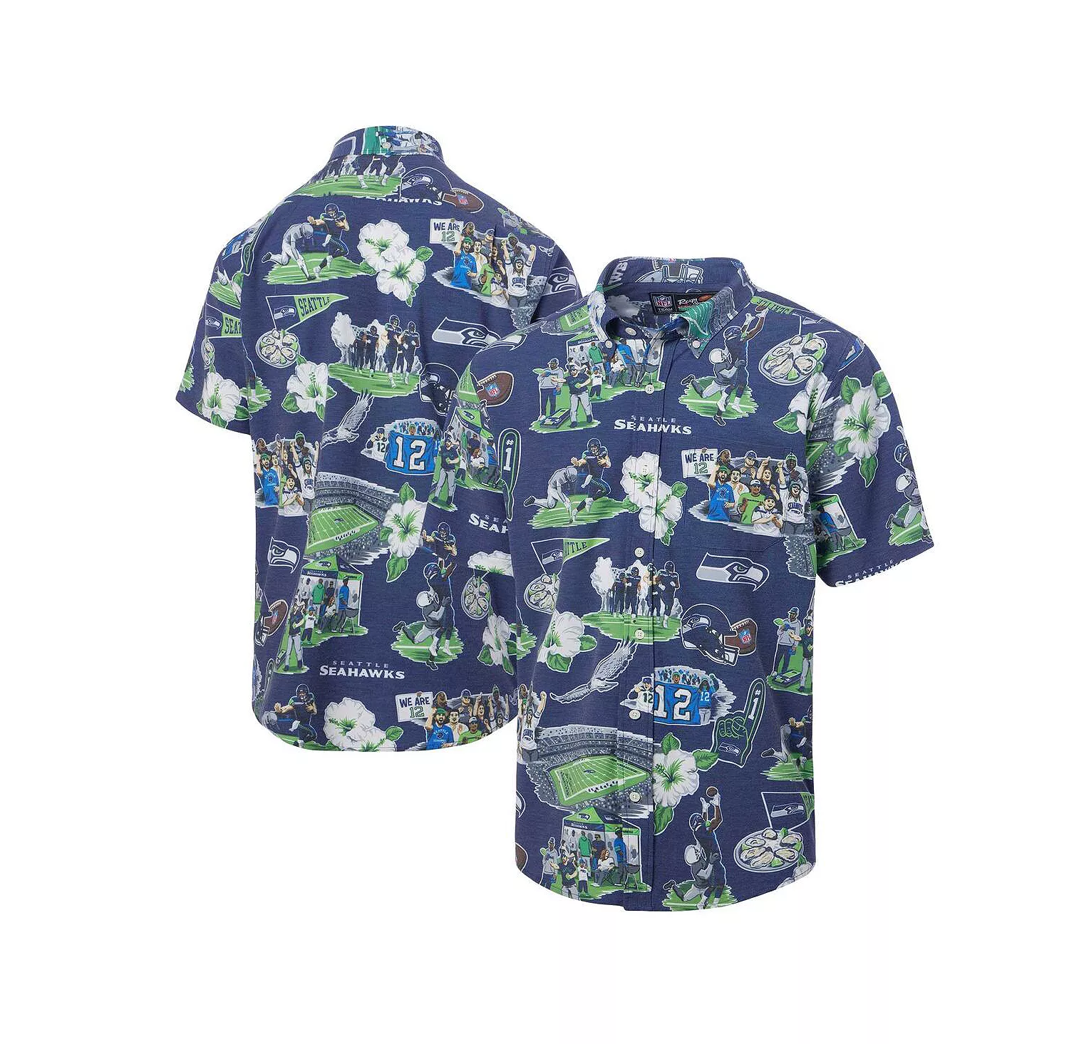 This Seattle Seahawks button-down shirt from Reyn Spooner will turn heads. It features graphics of the Seattle Seahawks logo and classic city iconography.