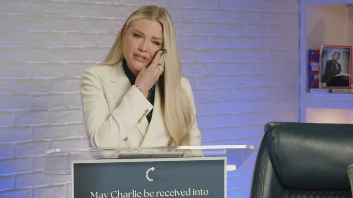Erika Kirk call called her late husband Charlie the’perfect’ father, weeping throughout her comments