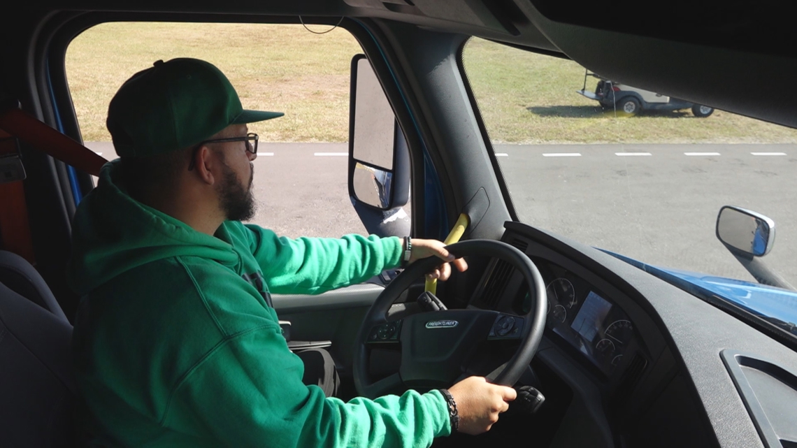 Aspiring truck drivers undergo a 30-day training program before they’re allowed on the highways.