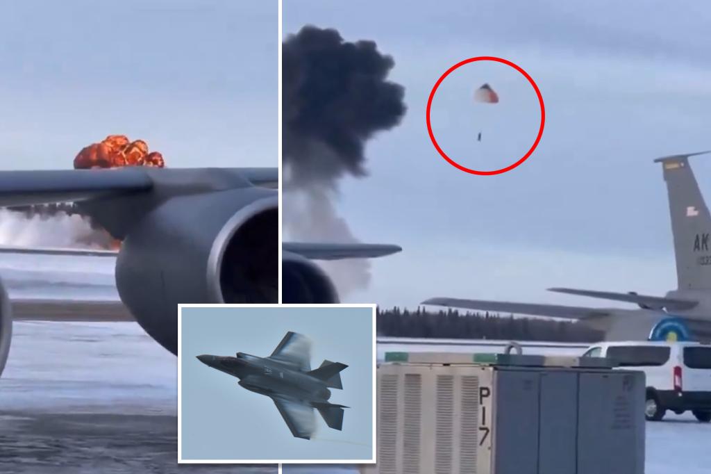 An alarming video showed an F-35 fighter jet crashing onto the runway, exploding into flames during a practice session at Eielson Air Force Base in Alaska on a Tuesday afternoon.