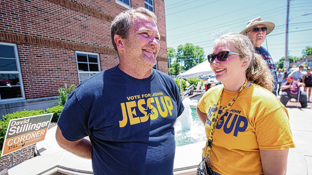 John Jessup, 50, is facing up to 15 years in prison after pleading guilty to sexually assaulting his daughter Rachel (pictured together campaigning for him). Rachel said she identified herself as the victim of her father’s sex attack after seeing him get re-elected to the Hancock County Council, which she said was ‘heartbreaking’Â