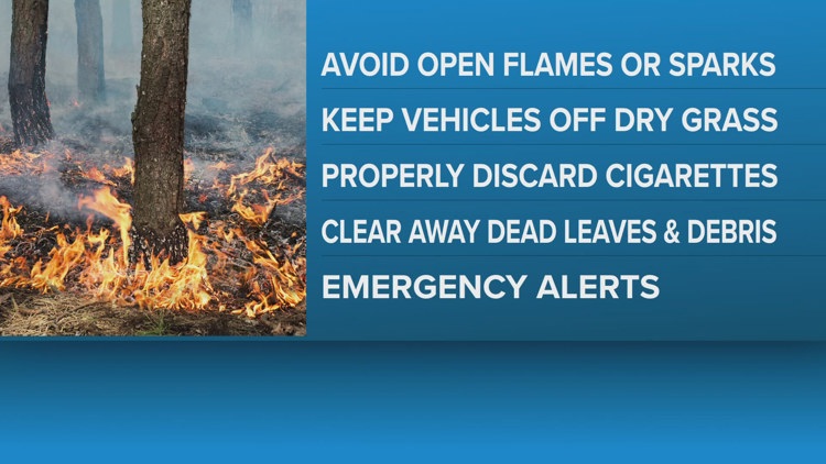 Emergency officials are urging residents to use caution this weekend. Jax Ready recommends avoiding open flames, keeping vehicles off dry grass, properly discarding cigarettes, and clearing dead leaves or debris around homes. People should also ensure they can receive emergency alerts in case evacuations are ordered.