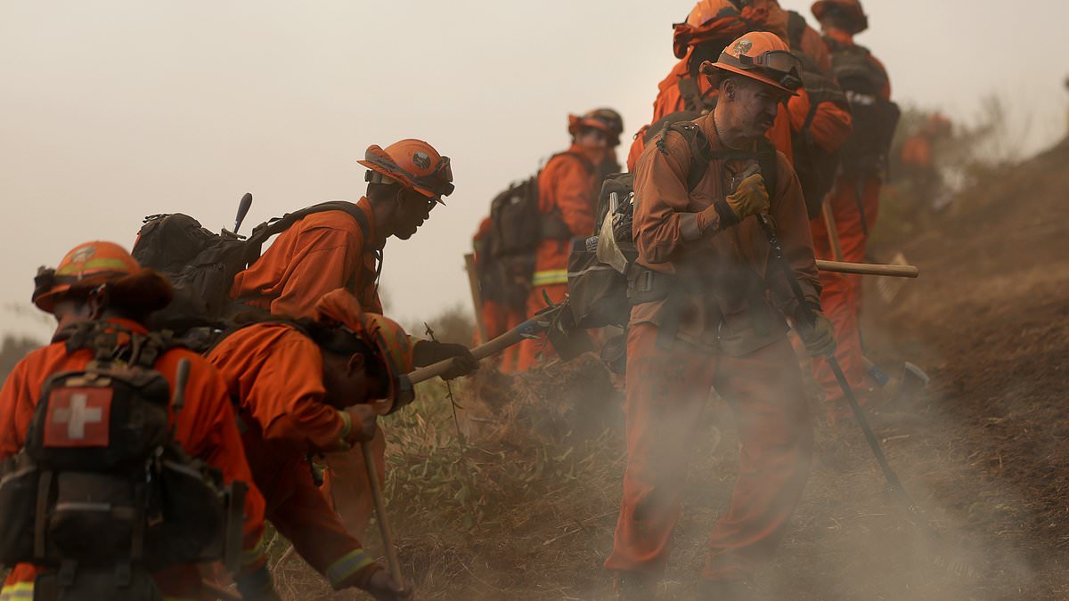Firefighters and helicopters have also been seen circling the area and making massive water drops as the 22,660-acre fire continues to spread.