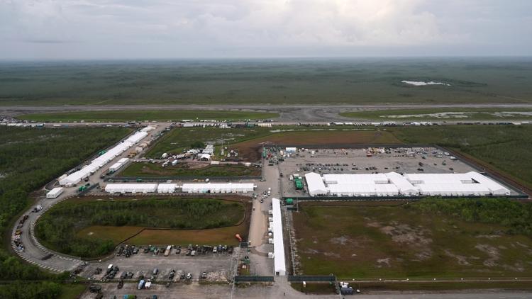 The detention center was built rapidly two months ago at a lightly used, single-runway training airport in the middle of the rugged and remote Everglades. State officials have signed more than $245 million in contracts for building and operating the facility, which officially opened July 1.