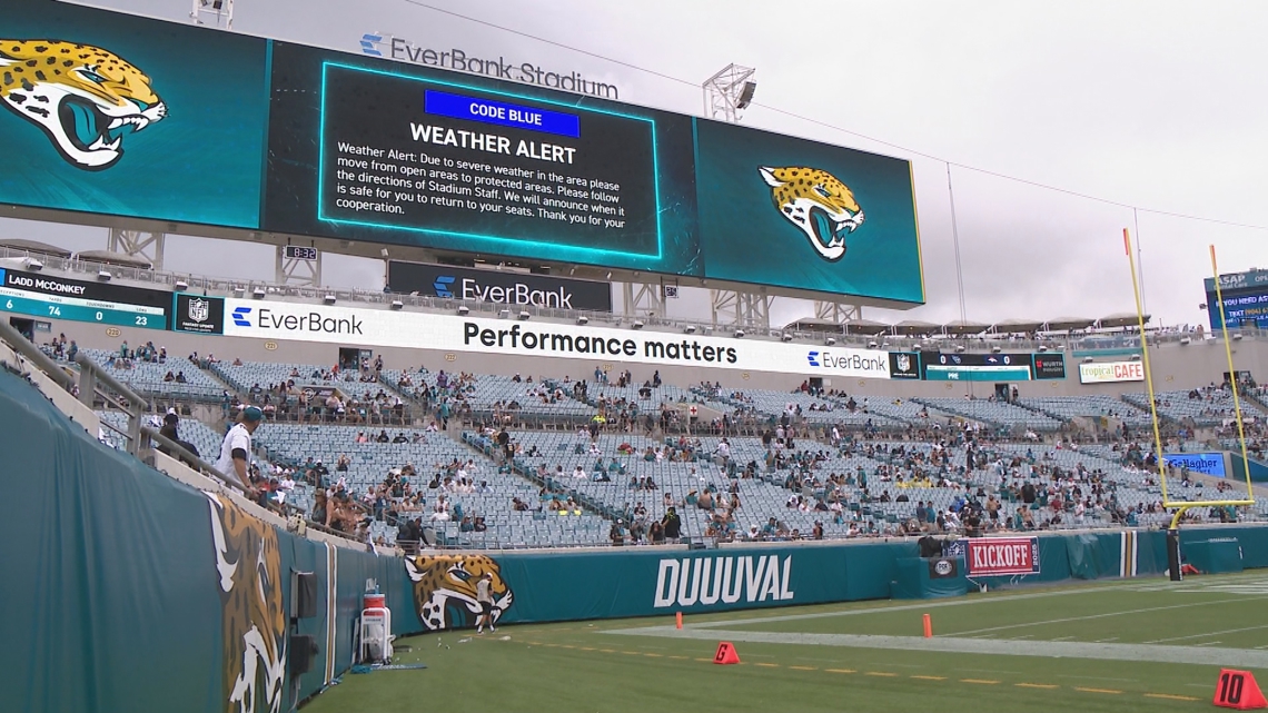 JACKSONVILLE, Fla. — Jaguars fans had to be a bit patient if they wanted to see today’s win from start to finish after severe weather in the area delayed the game for more than an hour.