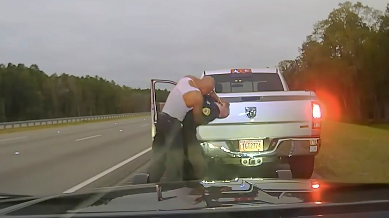 Law enforcement is seen administering aid to Leonard Cure, on Monday, Oct. 16, 2023, Camden County, Georgia. (Camden County Sheriff’s Office via AP)
