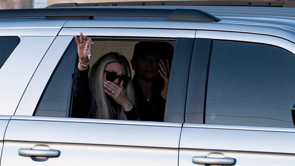 Erika Kirk waved to the supporters from an SUV on Thursday evening, fighting back tears and holding a rosary in her hand, as her husband’s remains were taken to an Arizona chapel