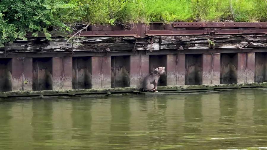 Wedged against a steel piling was a small dog, soaked, shivering and unable to free herself. Bratton didn’t think twice.