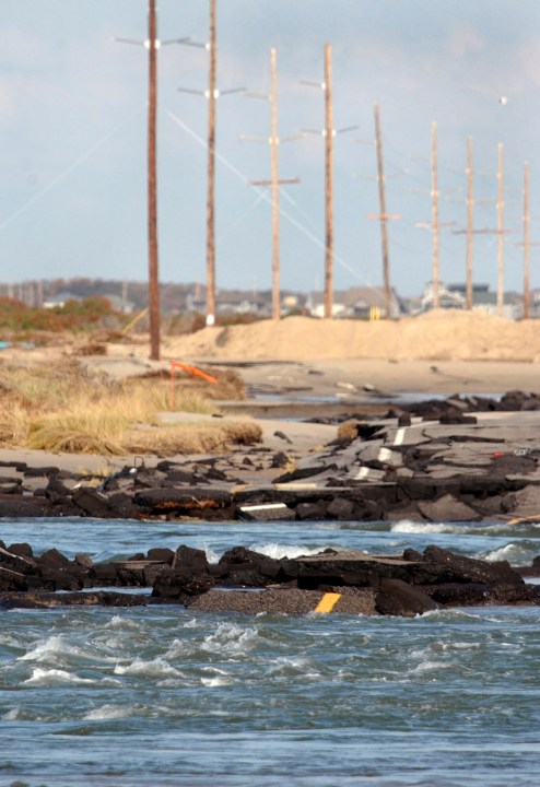 When the storms come, water from the ocean or the sound punch through the sand dunes and wash tons of sand and debris on the road. In more extreme cases, storms can break up the pavement or even create new inlets that require temporary bridges.