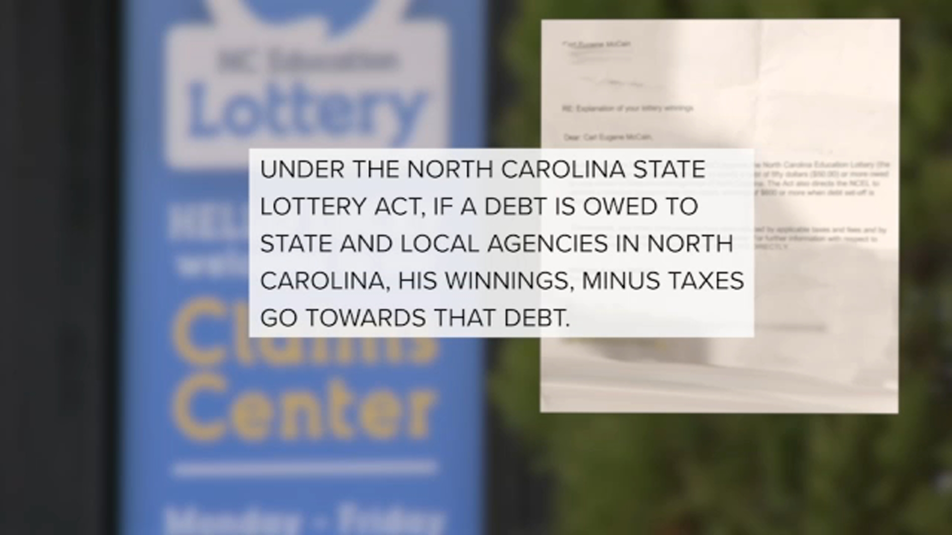 However, instead of receiving a check, McCain was presented with documents outlining the North Carolina State Lottery Act. According to the act, if a lottery winner has any outstanding debts to state or local agencies, the winnings, after taxes, are used to settle those debts.