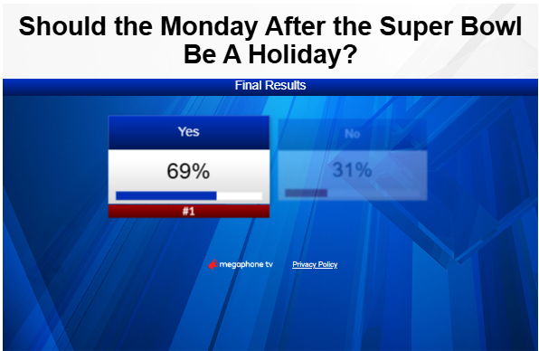 Exactly one week before the post-Super Bowl Monday blues rolled in, affiliate WDAF shared a poll asking viewers if they believe the day after the big game should be a national holiday.