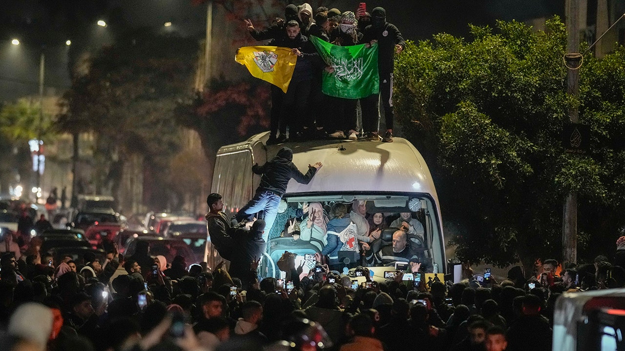 Some supporters were seen waving Hamas flags after climbing on top of the buses carrying detainees from Israel’s Ofer prison, just outside the West Bank city of Ramallah, according to the Associated Press. All of those freed were women and teenagers who were being held on charges related to Israeli state security.