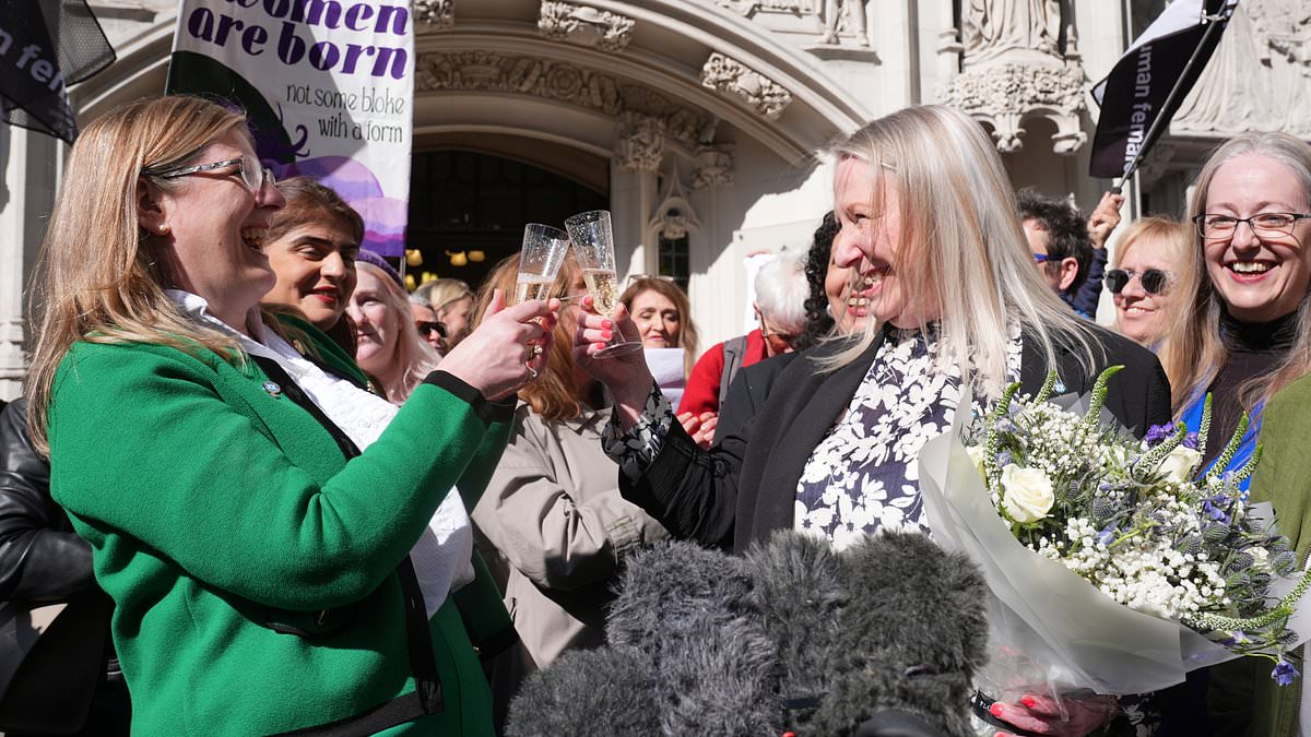 Women were seen celebrating and hugging after the landmark ruling that trans women are not legally women