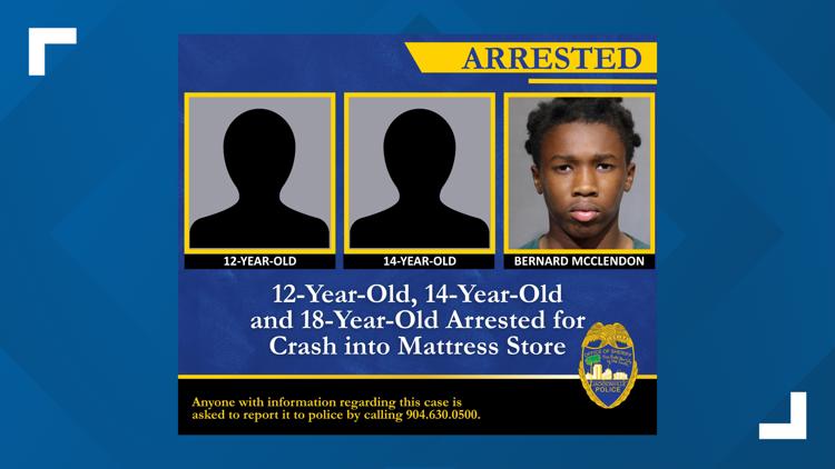 JACKSONVILLE, Fla. — On Tuesday evening, the Jacksonville Sheriff’s Office reported the arrest of three individuals linked to an incident where a vehicle collided with a furniture store on Dunn Avenue.