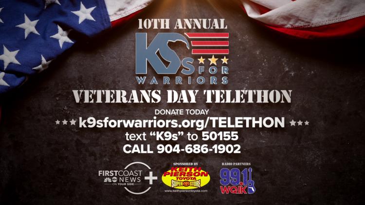 For the past decade, First Coast News has partnered with K9s for Warriors on Veterans Day to collect donations aimed at providing service dogs for veterans who are in need of support.