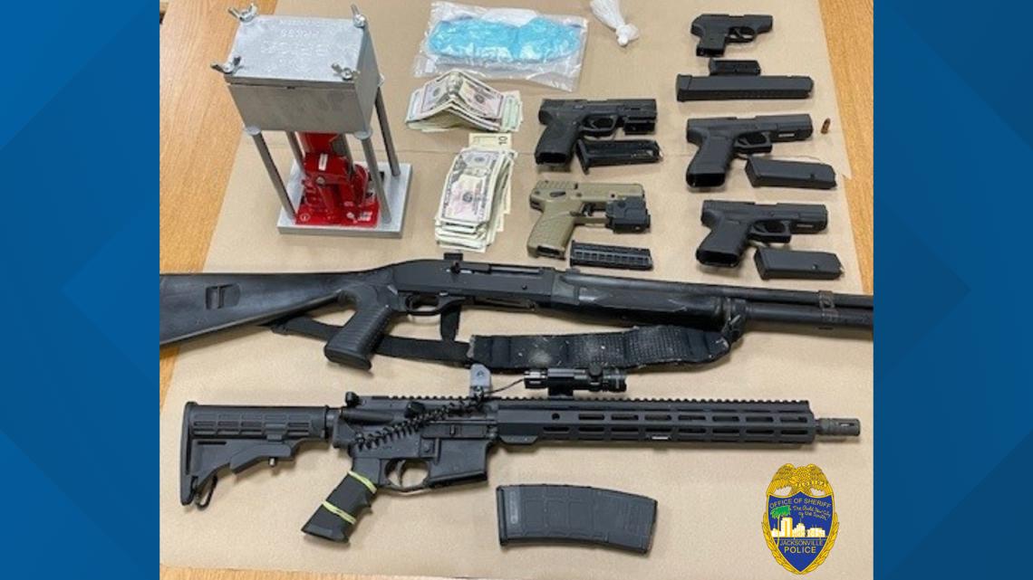 Police said they found 126,850 deadly doses of fentanyl (equivalent to 253.7 grams), 5.2 grams of powder and crack cocaine, five pistols, a shotgun and a rifle at a home on Lippia Road in Northwest Jacksonville.
