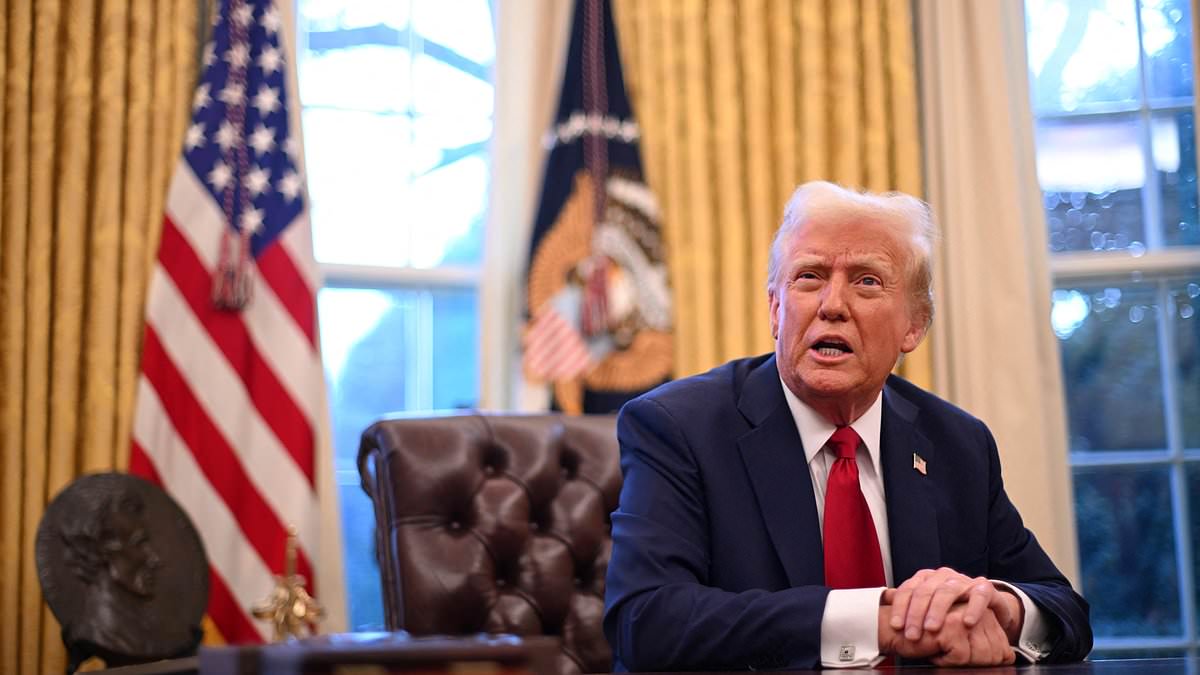 US President Donald Trump speaks to journalists in the Oval Office of the White House in Washington, DC, on January 30, 2025