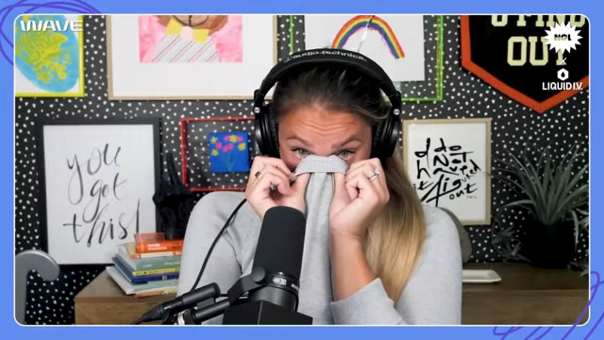 The wife of Jason Kelce could not hold back the tears during the podcast episode
