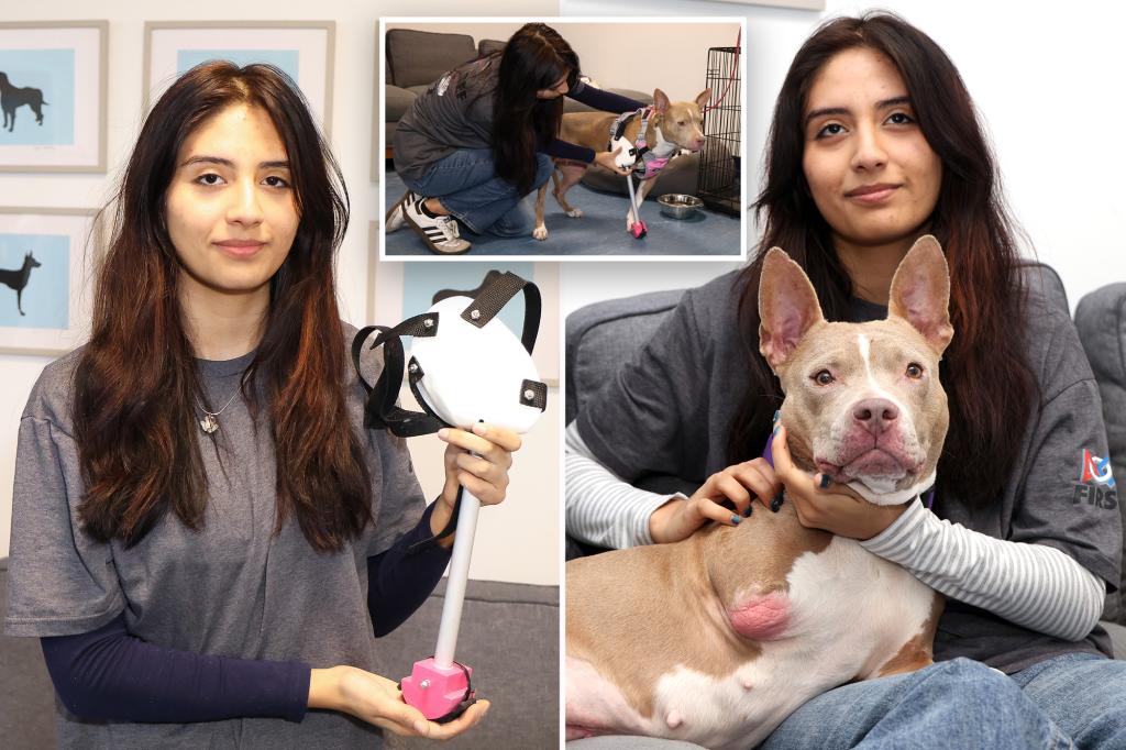 Southampton High School robotics club leader Sarah Barros, 16, was so driven to help Tryla, a friendly pitbull mix, get adopted more easily that she even raised the money to produce the 3D-printed limb herself.