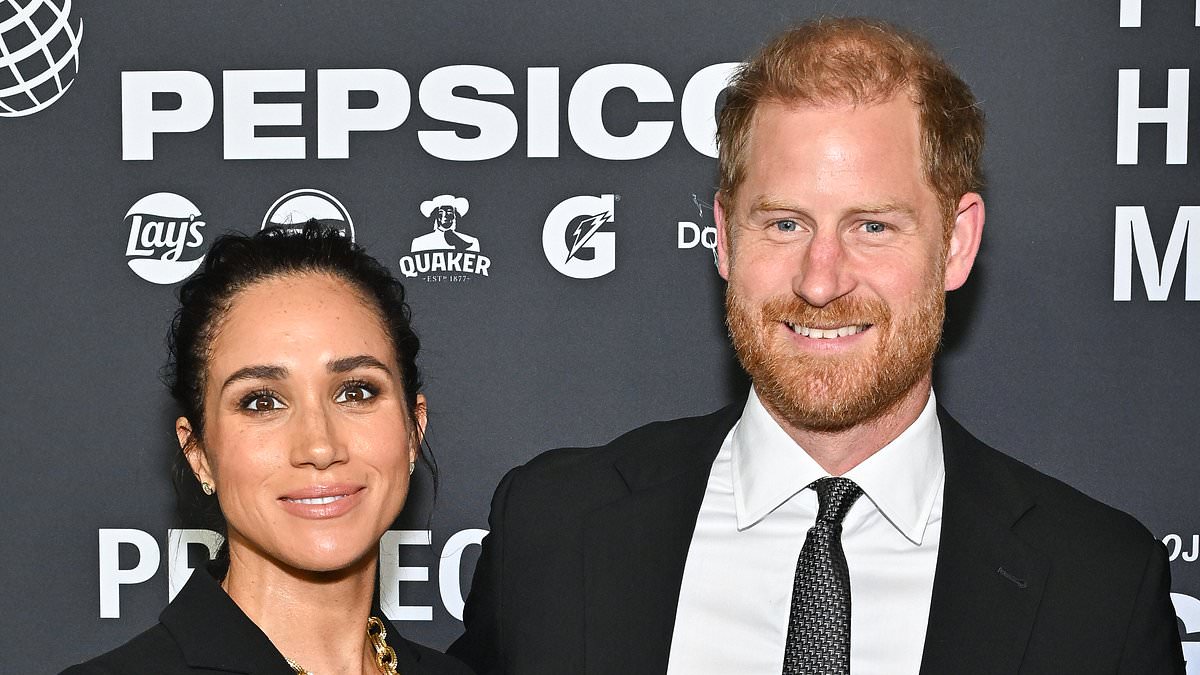Meghan Markle, 44, shared a telling exchange with husband Prince Harry, 41, after their ‘awkward’ red carpet appearance in NYC one day earlier (seen above)