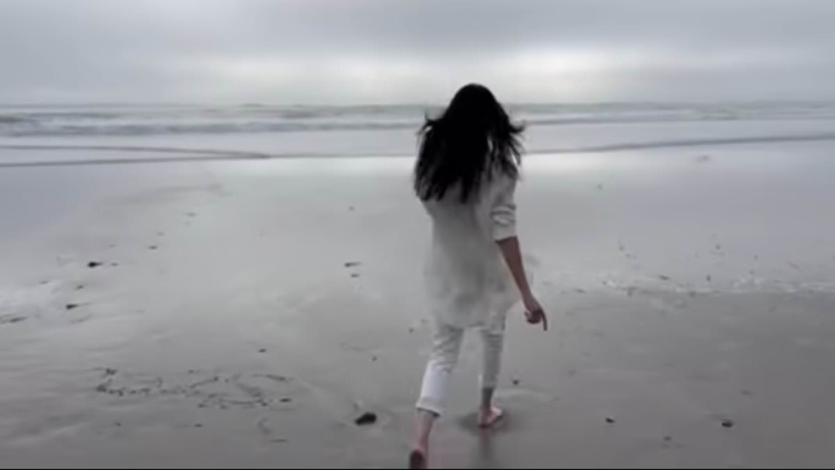 The clip saw the former senior working royal running barefoot towards the tide of a Californian sandy beach.