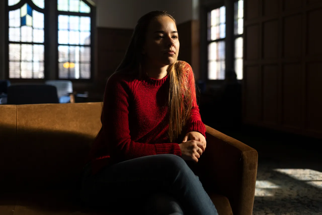 University of Michigan junior Allison Voto poses of a photo inside the Michigan Union on the University of Michigan campus in Ann Arbor, Mich., Jan. 17, 2026. (AP Photo/Emily Elconin)