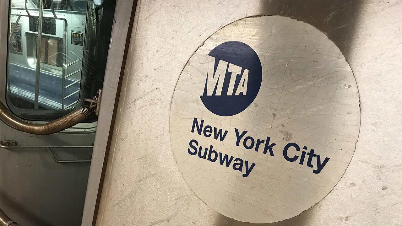 The MTA logo is seen on a New York City subway train. (Luiz C. Ribeiro/New York Daily News/Tribune News Service via Getty Images)