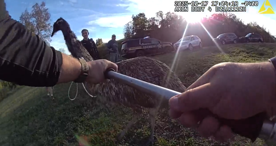 In a shared video, the county sheriff’s office captured the moment deputies tried to wrangle a runaway emu, a large bird resembling an ostrich, using equipment typically meant for capturing dogs.