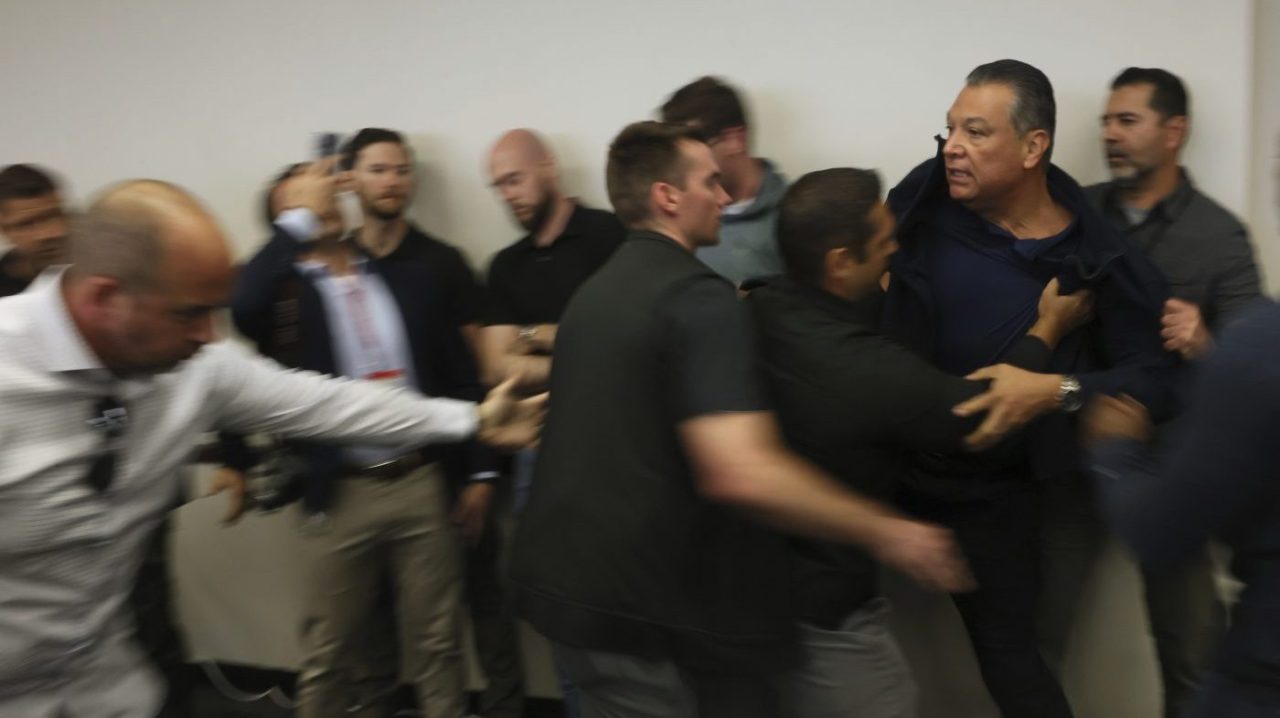 Video of the incident shared by a Fox News reporter shows multiple men restraining Padilla and forcing him out of the room, while other video show they later push him to the floor to handcuff him.