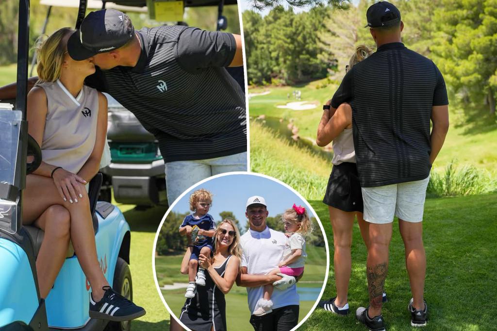 Patrick, Brittany Mahomes pack on sweet PDA during family golf outing with their kids