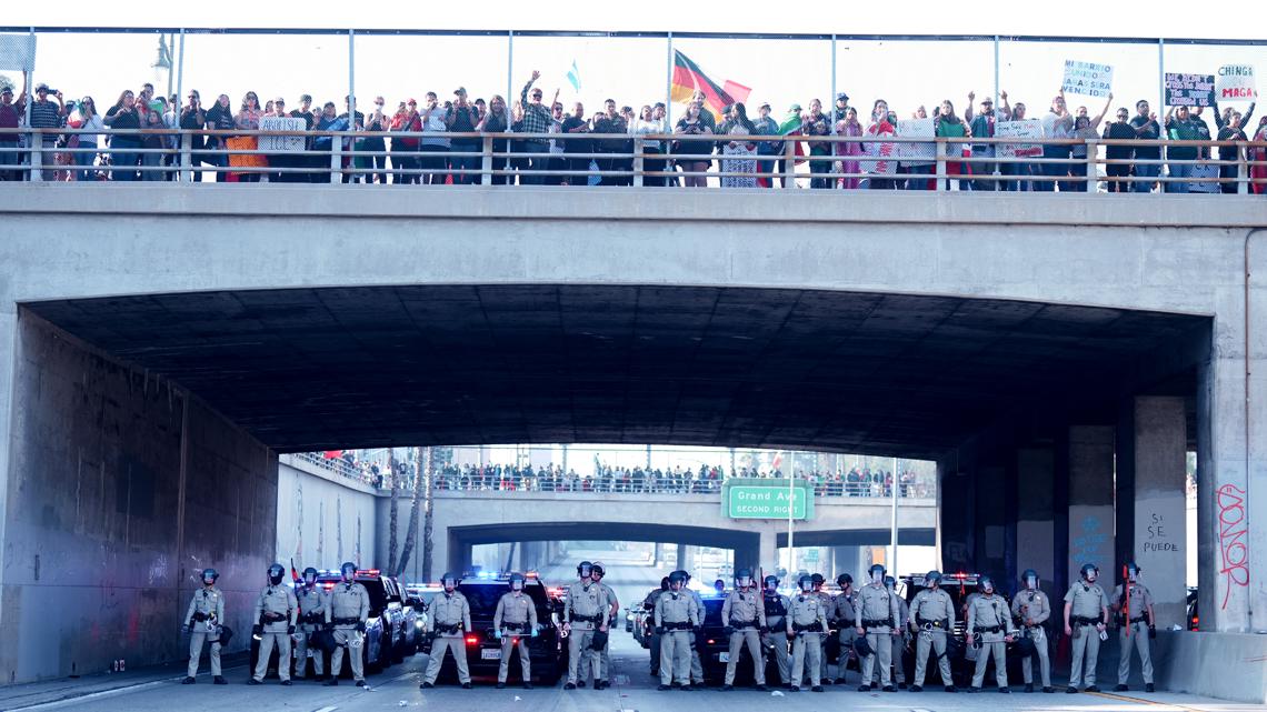 LOS ANGELES — Thousands of people protesting mass deportations planned by President Donald Trump marched in Southern California on Sunday, including in downtown Los Angeles where demonstrators blocked a major freeway for several hours.