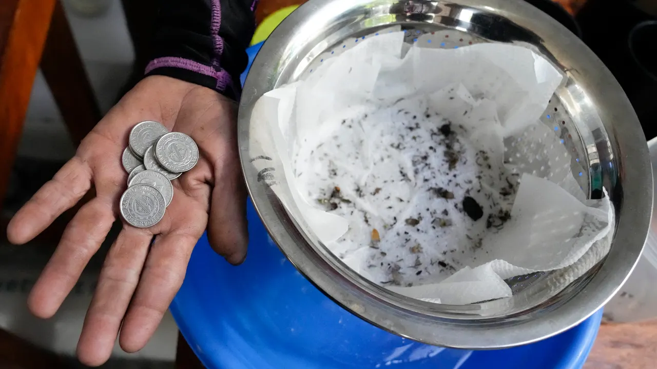Michael Labag shows the 9 pesos reward he got from the 45 mosquito larvas he captured in Mandaluyong city, Philippines as the village started offering bounty for captured mosquitoes, dead or alive, as part of an anti-dengue campaign on Wednesday, Feb. 19, 2025. (AP Photo/Aaron Favila)