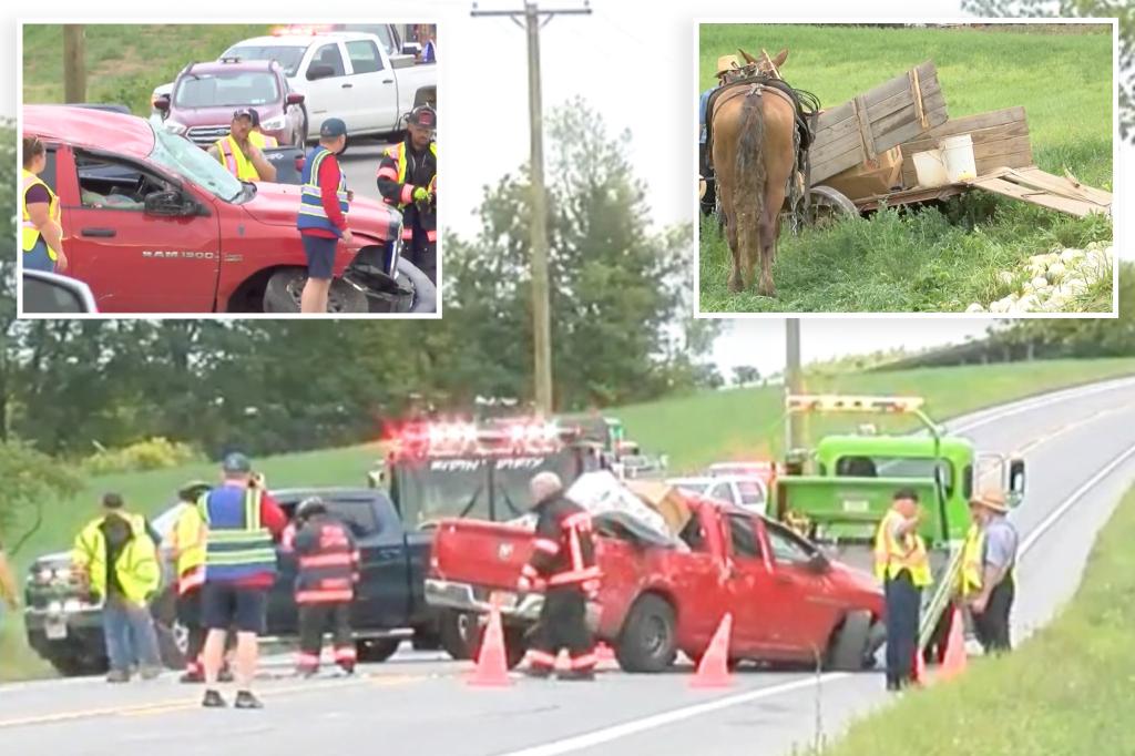 Pickup truck slams into Amish horse-drawn buggy in upstate NY, killing horse and sending 6-year-old to hospital