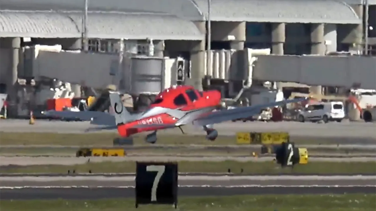 A dramatic video captured a small plane bouncing on the runway of Tampa International Airport while trying to land.