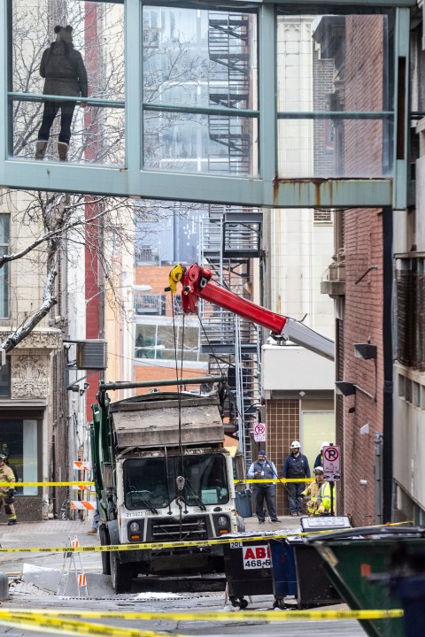 Downtown Omaha loses power for hours after a garbage truck gets stuck in a sinkhole
