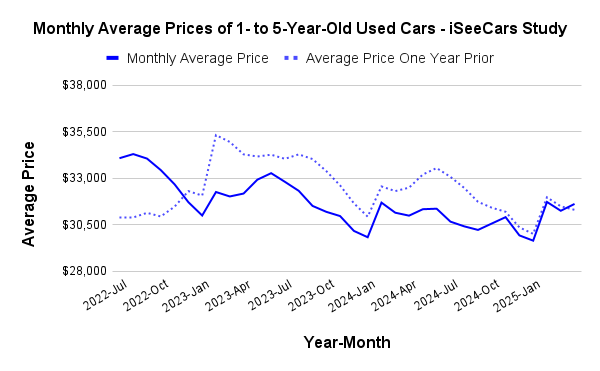 Average Prices of 1- to 5-Year-Old Used Cars – iSeeCars Study