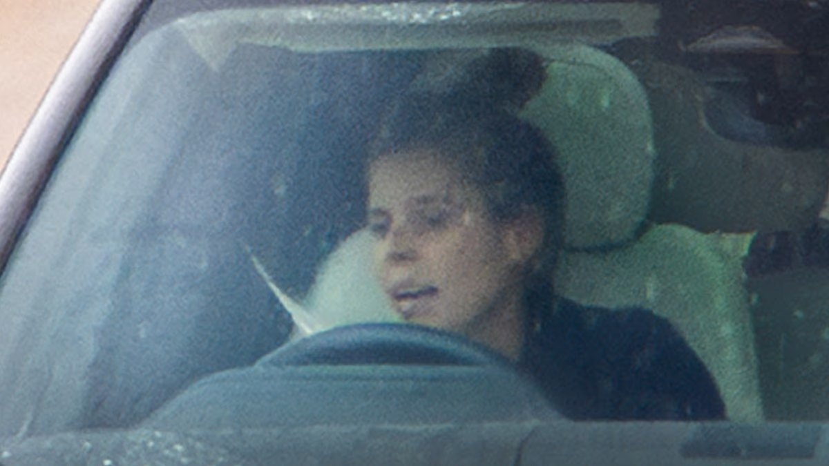 Princess Beatrice drives from Royal Lodge, home of her father Prince Andrew and mother Sarah Ferguson, at Windsor in Berkshire today