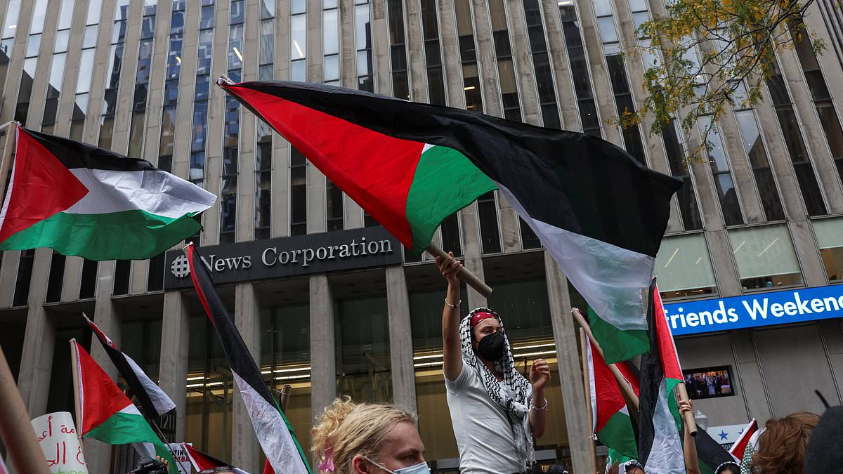 In NYC, hundreds of protestors have gathered in front of the Fox News building and across college campuses, waving Palestinian flags and chanting