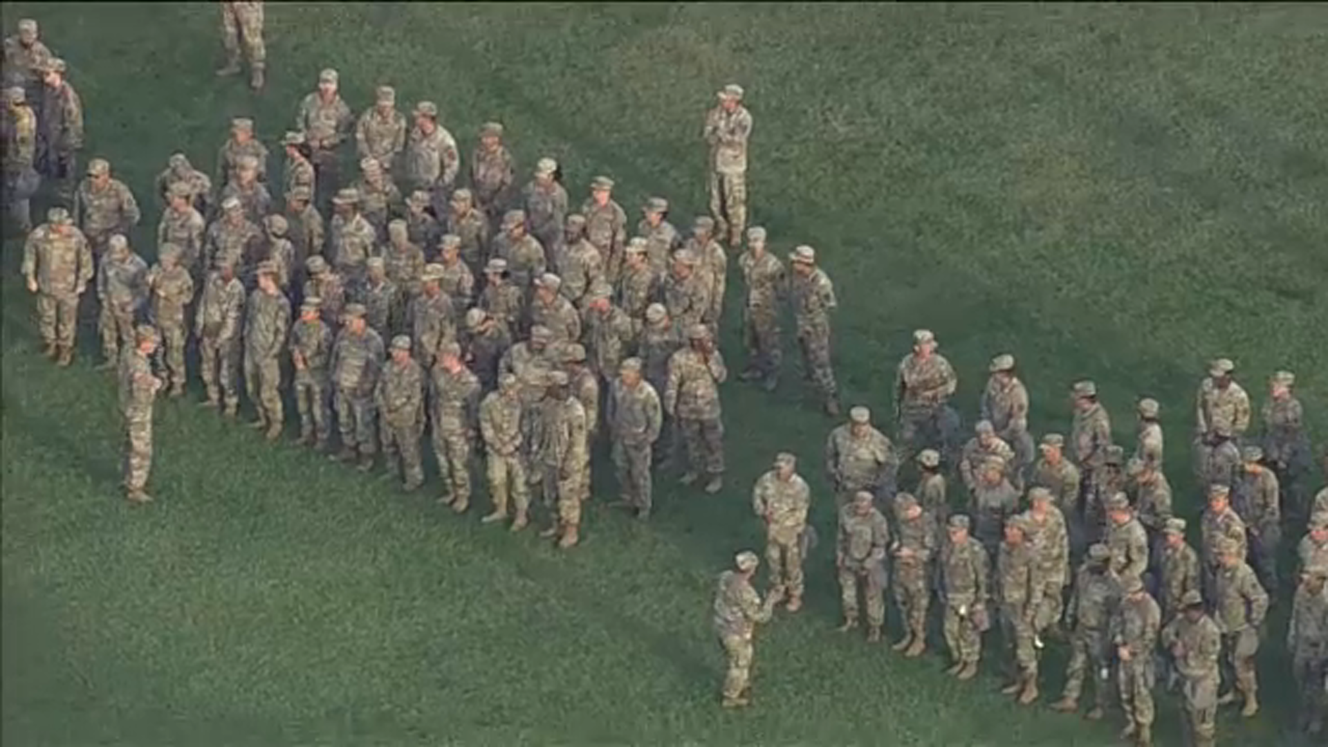 Chopper 7 spotted National Guard troops at the Army Reserve training center in Elwood on Friday morning.