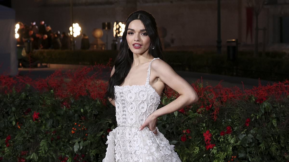Rachel Zegler exuded glamour as she took to the stage to perform at the ‘scaled back’ Snow White premiere at a remote castle in Spain on Wednesday.