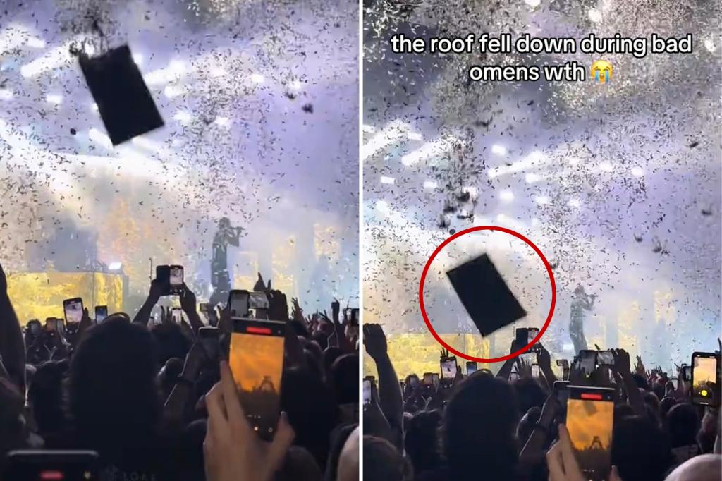 Confetti canons were shot up into the air, causing what seemed like parts of the ceiling to shake at Festival Hall. This resulted in several tiles falling onto the crowd below.