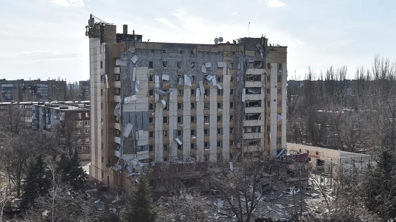 A view shows a damaged hotel at the site of a Russian missile strike, amid Russia’s attack on Ukraine, in Kryvyi Rih, Ukraine, on March 12, 2025. (REUTERS/Mykola Synelnykov)